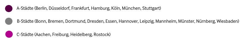 Anmerkung: Größe der Kreise entspricht der Anzahl der Zimmer je Stadt