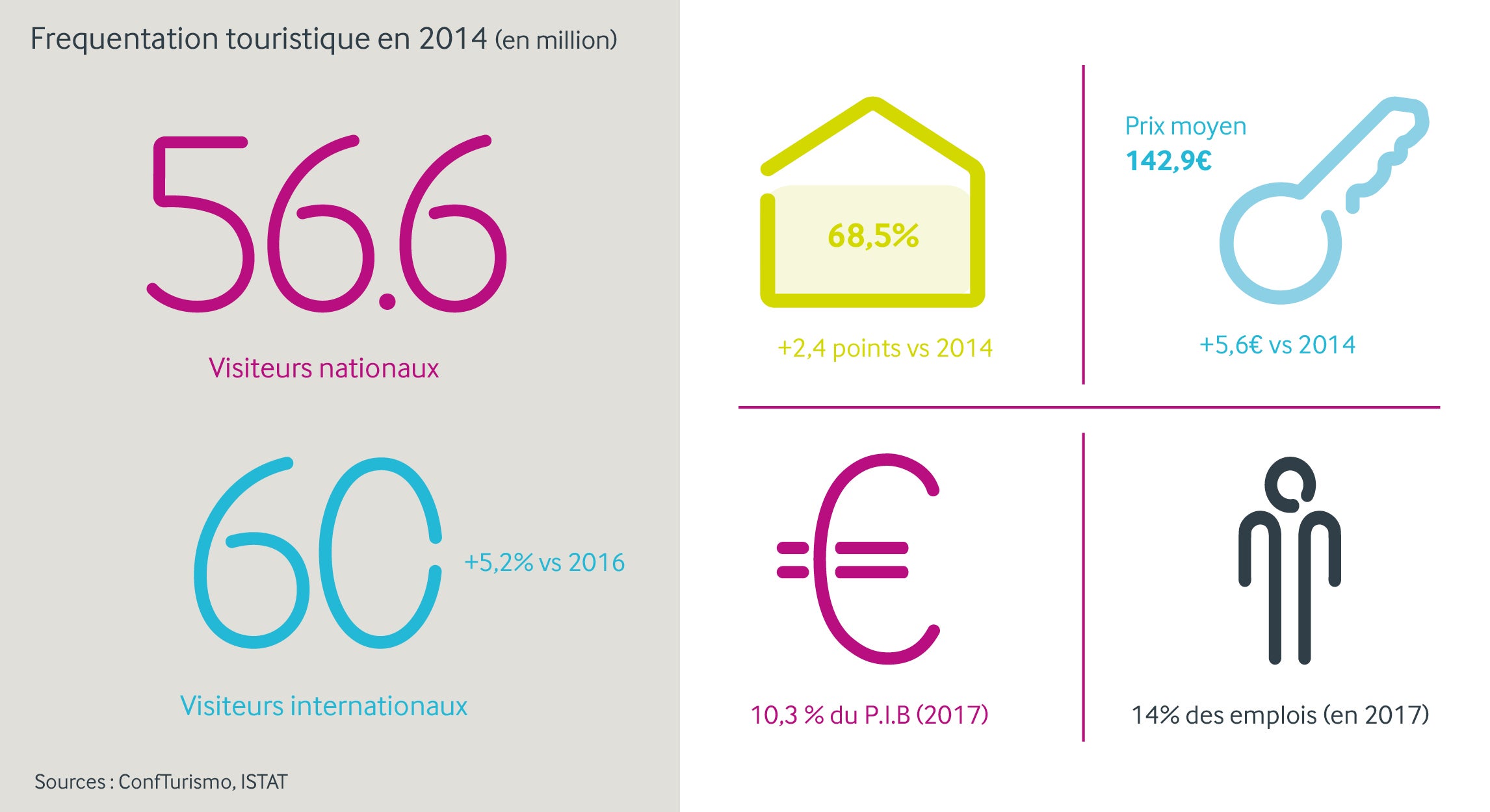 À plus long terme, les investisseurs pourraient tirer leur épingle du jeu grâce à la conjonction de plusieurs facteurs qui laissent entrevoir le potentiel séduisant du marché italien. L’Italie est le deuxième pays européen en nombre d’hôtels (33 000) – derrière le Royaume-Uni – représentant 16% de l’offre, mais à ce jour seulement